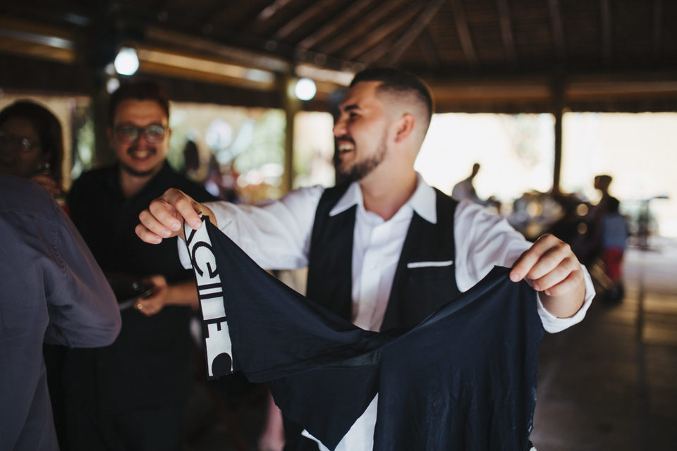 Assim foi com a Bruna e com o Diego, um casamento cheio de personalidade, estilo e identidade. Eles colocaram a identidade deles em todos os momentos, começando pela energia INCRÍVEL, mesmo se preparando cada um em um local havia uma conecção surreal, rolou muitas risadas e lágrimas, Diego mandou um buquê lindíssimo com uma cartinha escrita a mão, já Bruna enviou uma caixinha com um relógio bonitão com aquela cartinha escrita a mão que deixou o noivo chorando ao terminar de ler. E você ainda tem alguma dúvida que esse dia foi emocionante do começo ao fim ??