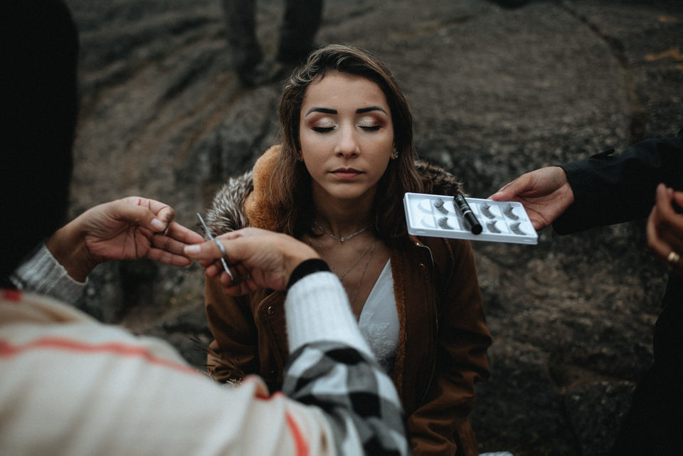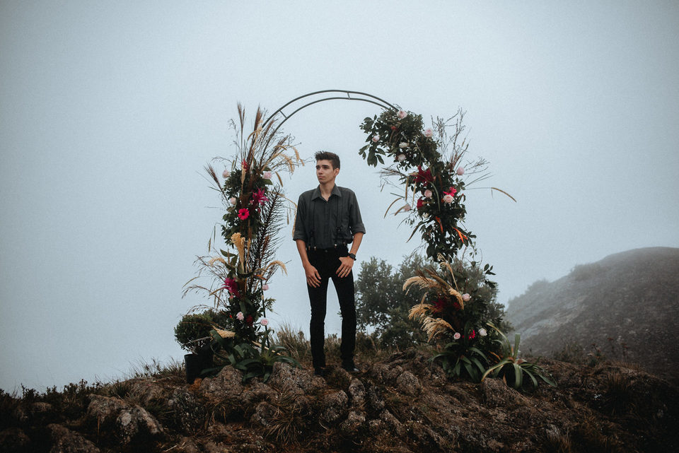 Temos que confessar que não foi nada fácil toda a preparação, nós subimos cerca de 30 minutos com todo o materiai para a montagem de um cenário incrível, ao chegar no topo da pedra o tempo estava perfeito, havia um sol incrível não havia muito vento, porém ao se aproximar do momento mais esperado, teve uma mudança um tanto quanto inesperada em relação ao tempo, o sol decidiu se esconder, com isso veio aqule vento extremamente gelado e um nevoeiro que não deixava a gente enchergar 2 metros a nossa frente.