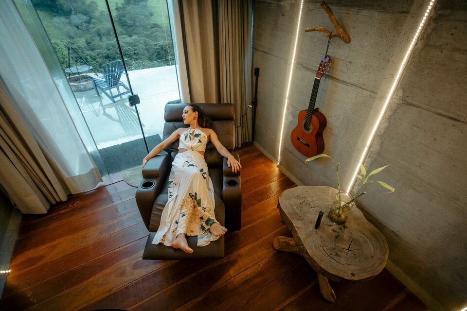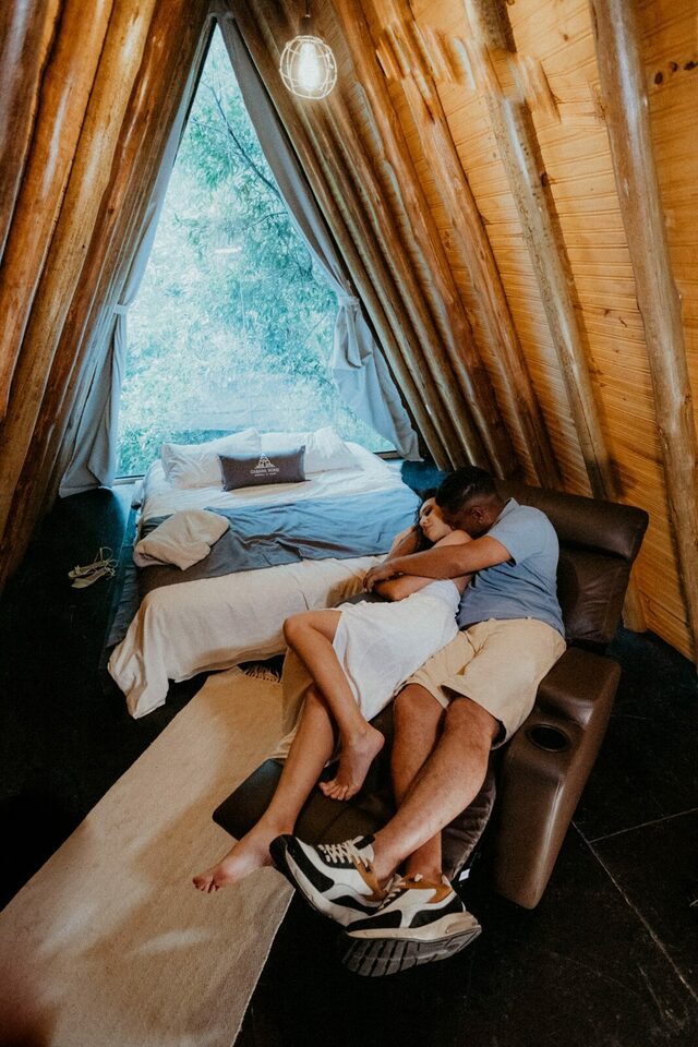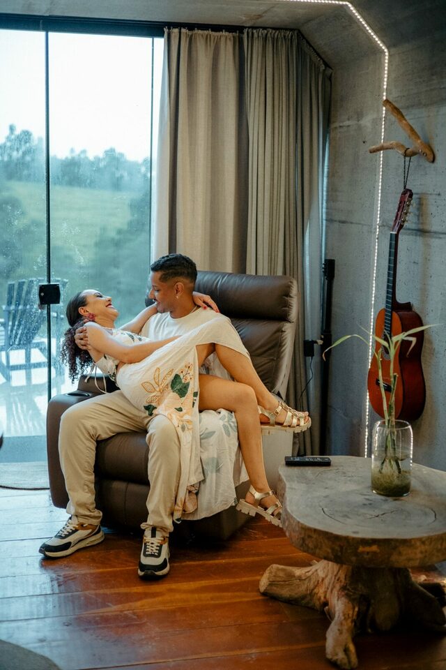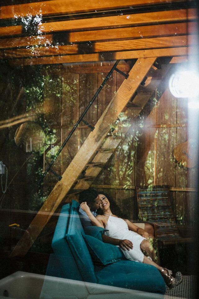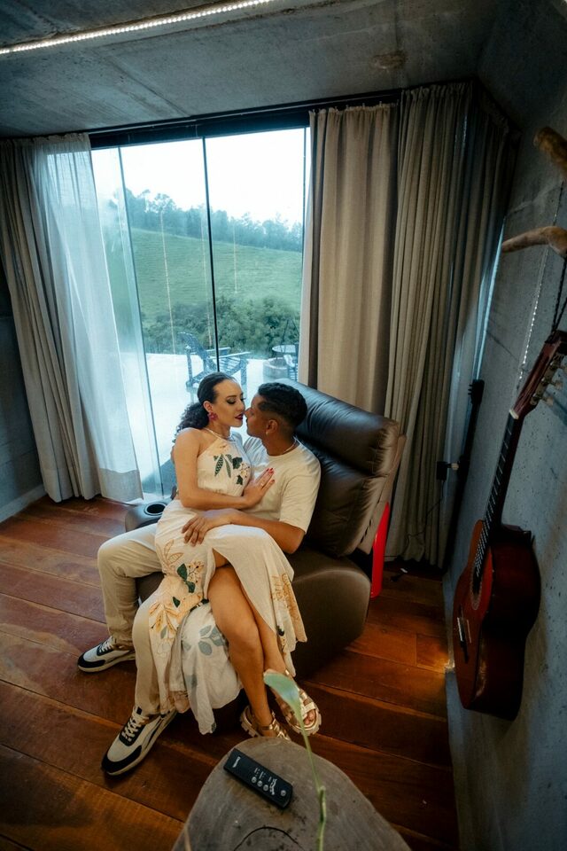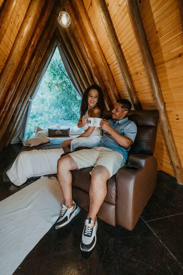 Casa na arvore, é isso mesmo uma casa na arvore feita de container, sem dúvidas uma acomodação única e cheia de estilo, e ainda para deixar sua experiência ainda mais incrível eles montaram um deck no teto do container que ficou incrível para ver o pôr do sol e aproveitar o fim de tarde!